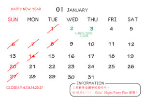遅めのご夕食、新年会の2次会など・・・是非お問い合わせくださいませ。