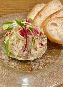 *海老とアボカドと根菜のタルタル仕立て*