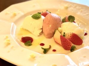 自家製ヨーグルトムースととちおとめのソルベ添え ベリーソース