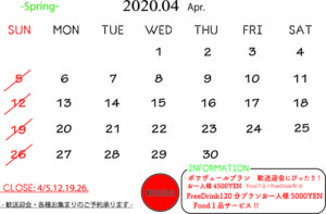話は長くなりましたが、4月の営業スケジュールカレンダーです。