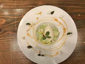 みずみずしいメロンとさわやかな酸味で、くせのなく軽い風味のカッテージチーズを合わせたドルチェです。