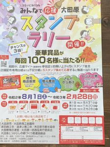 大田原市内、参加店にてスタンプ5個集めていただきますと、豪華商品が当たるキャンペーンカードです◎
