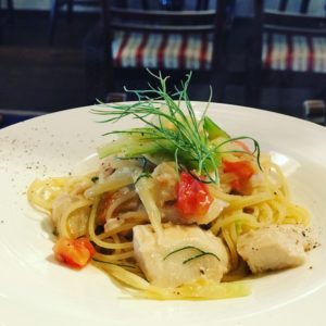 ・自家製ベーコンと夏野菜のトマトソースパスタ