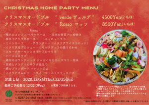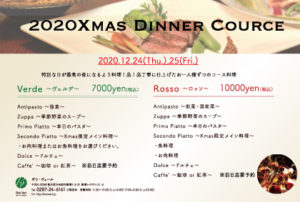 店内ご利用でしたら、2020クリスマスディナーコース。