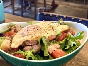 自家製ベーコンと、那須御養卵のオリジナルサラダです。