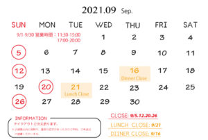 【9月営業スケジュール】