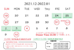 今年も残り少なくなってきましたが、今月最後までお客様が笑顔でお食事していただける