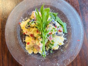 ソーセージと那須御養卵、チーズをつかった”アルザス風”サラダ仕立て