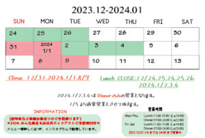 年始は2024.1/2 17:00よりOPENします。(1/5より通常営業となります)