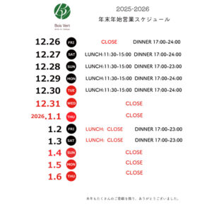 ・12/26(Fri.) Lunch CLOSE Dinner 通常営業